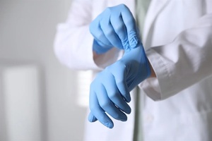 Nurses commonly wear nonsterile gloves while preparing antimicrobial injections for intravenous use and giving these shots to patients.