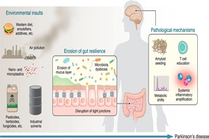 A recent perspective suggests that PD may, in some individuals, begin in the gut, driven by environmental exposures and changes in the microbiome.